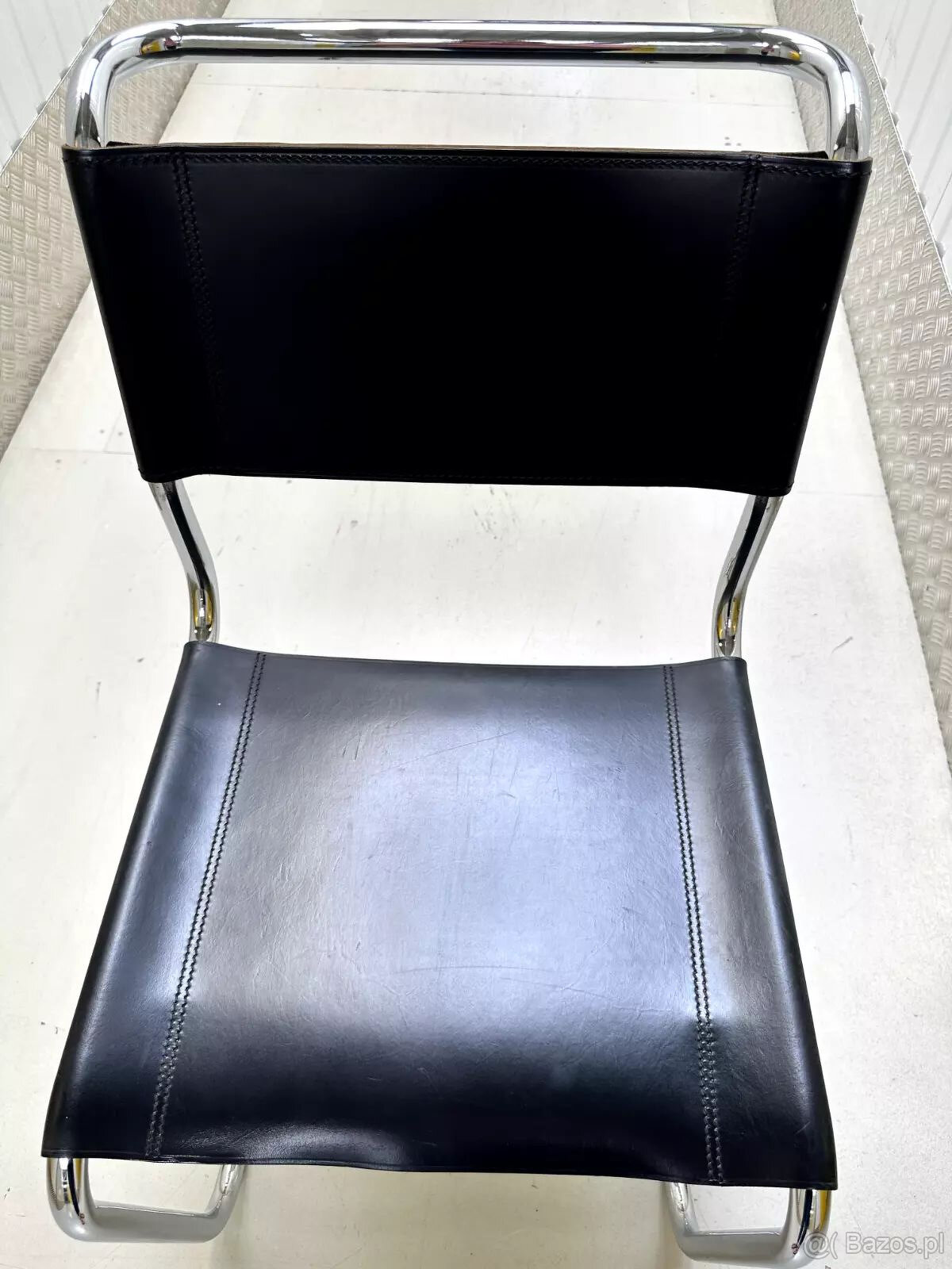 Zestaw siedmiu krzeseł Thonet S33 cantilever, klasyka Bauhausu w eleganckiej czerni, oferuje ponadczasową elegancję w każdym pomieszczeniu. Wykonane z wysokiej jakości skóry, krzesła te dodadzą odrobinę klasy każdej jadalni lub gabinetowi. Idealny dla dorosłych ceniących styl i wygodę, ten zestaw to must-have dla miłośników nowoczesnego designu i wysokiej jakości wykonania. Niewielkie ślady użytkowania, stan dobry lub średni, patrz zdjęcia.