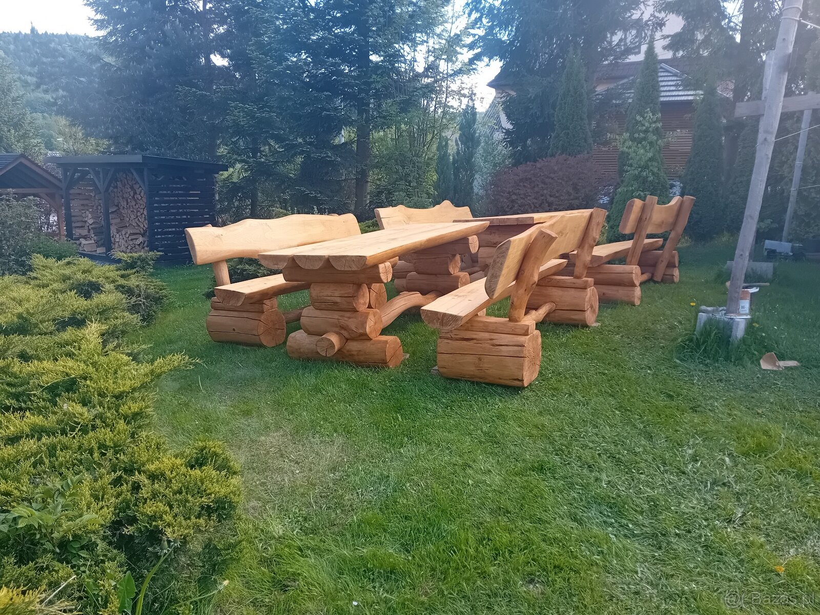 Meble ogrodowe - [5.4. 2026]Witam sprzedam meble ogrodowe wykonane z drewna jodlowogo zestaw składa się z stolu szer 80cm długości 200cm oraz dwie lawki z polbala transport do uzgodnienia tel 887227588