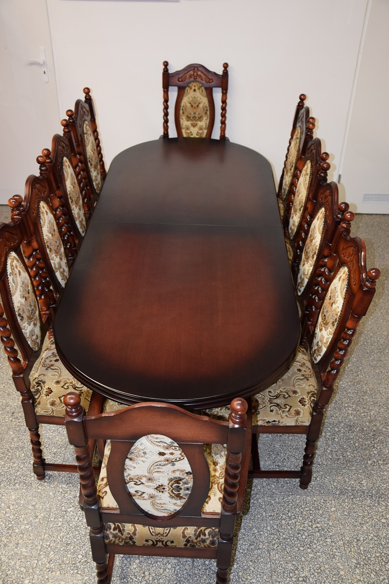 sprzedam piękny i stylowy rozkładany stół i 10 krzeseł,meble wykonane z drewna dębowego,cały komplet w idealnym stanie jak nowy
