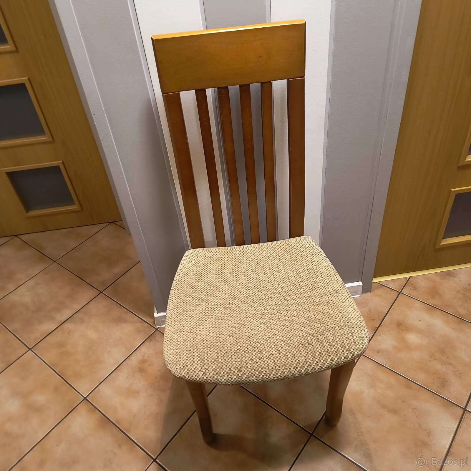 Sprzedam 4 krzesła drewniane,nogi z litego drewna,miękkie siedzisko jak pokazuje zdjęcie.Są w bardzo dobrym stanie,eleganckie.Cena jednego krzesła wynosi 150 zł.Szerokossć 45 cm.wysokość 102 cm.głębokość 43 cm.Polecam.