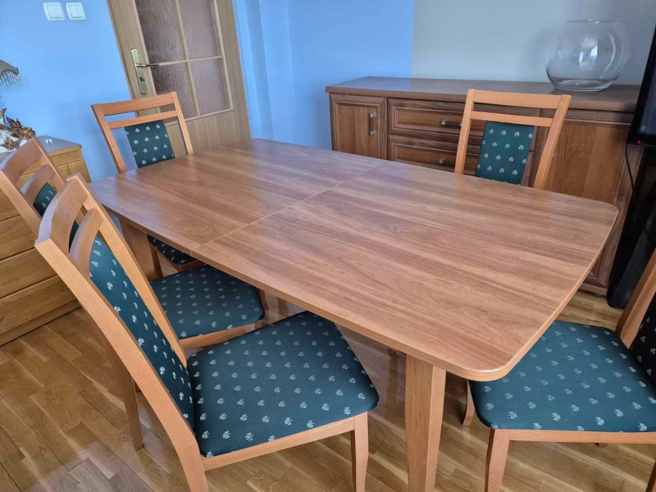 Sprzedam stół i 6 krzeseł w bardzo dobrym stanie. Obicia krzeseł bez plam.